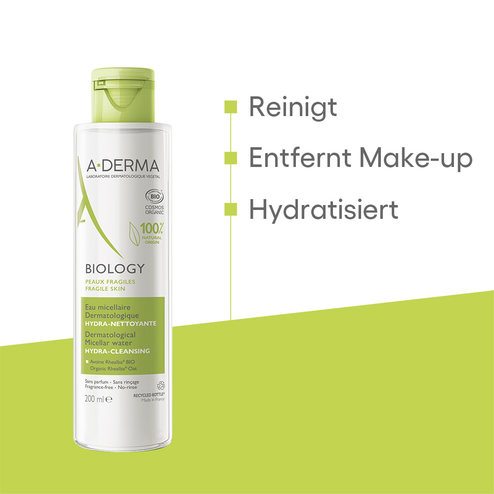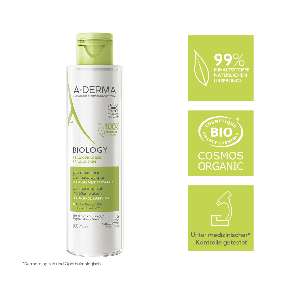 Die dermatologisches & bio-zertifiziertes reinigende Mizellen Gesichtswasser für empfindliche Haut.