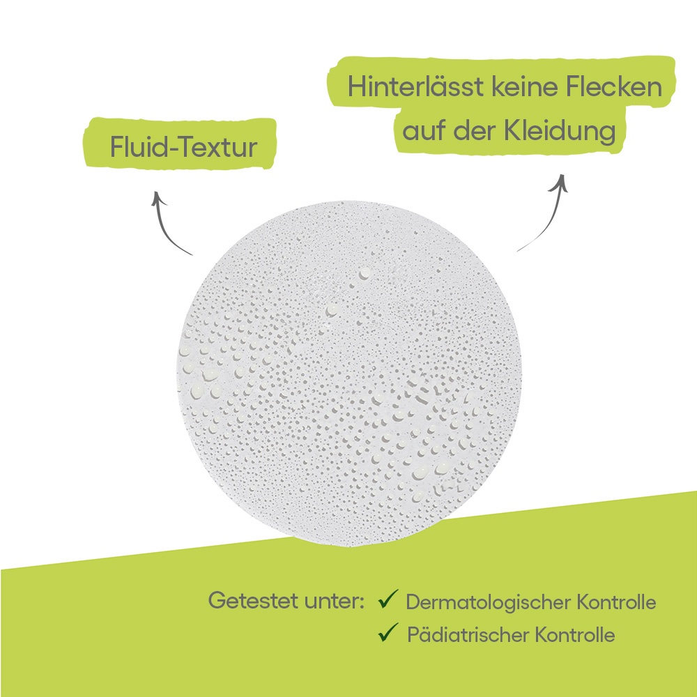 Pflanzenbasierte feuchtigkeitsabsorbierende und beruhigende Pflege bei nässenden Hautirritationen als Spray für eine schmerzlose Anwendung.