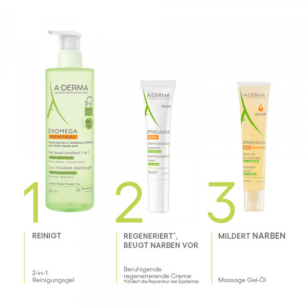 Dank des patentierten*** exklusiven Aktivstoffs Cicahyalumide® und des enthaltenen Uncaria tomentosa-Extraktes wirkt die innovative Formulierung EPlTHELIALE A.H ULTRA dreifach: Spendet Feuchtigkeit und fördert eine schnelle und ästhetische Regeneration der Haut, beugt Narben vor, beruhigt sofort und lang anhaltend unangenehme Hautempfindungen.