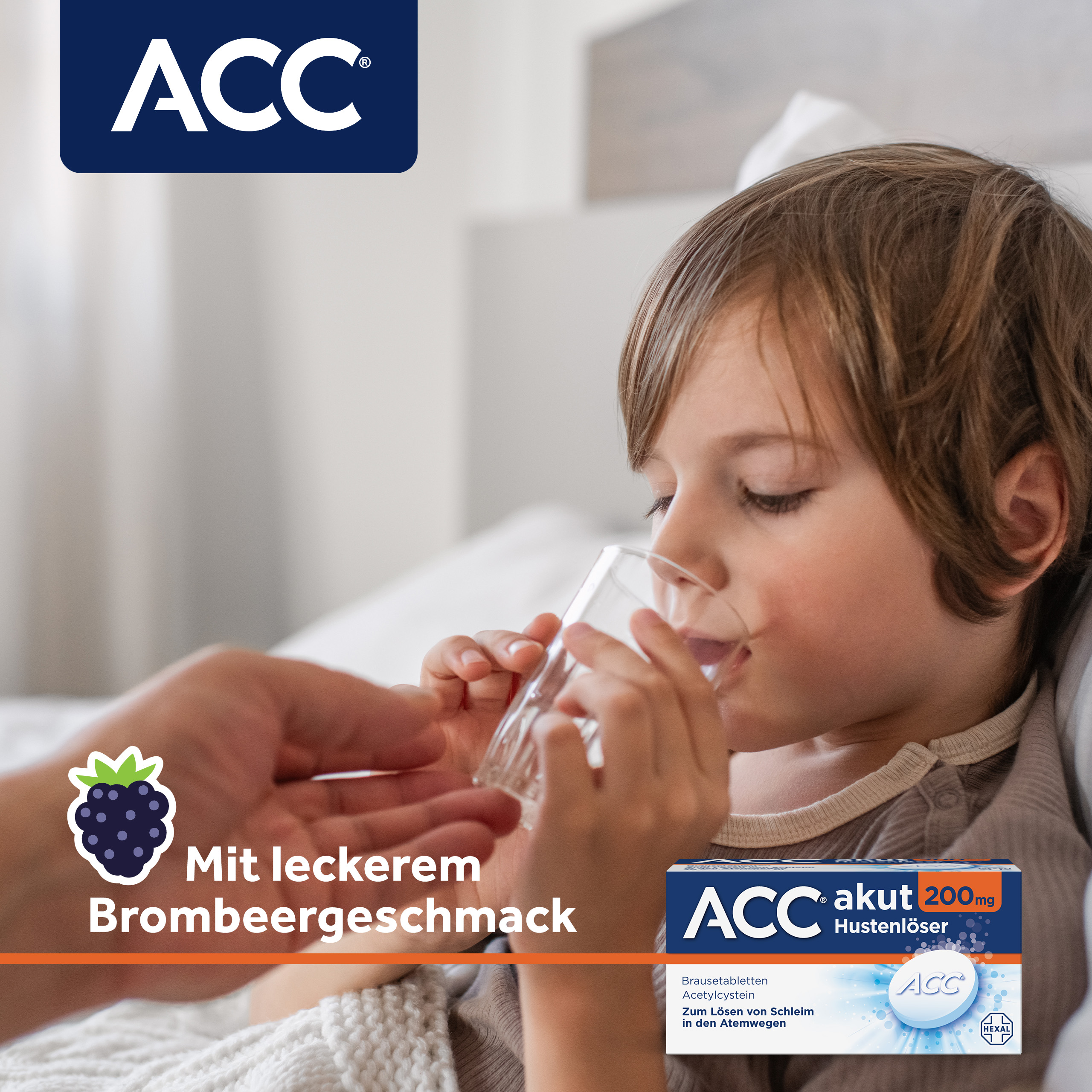 Der in ACC enthaltene Wirkstoff Acetylcystein ist eine Vorstufe der natürlichen Aminosäure Cystein. Acetylcystein löst Querverbindungen, sogenannte Disulfidbrücken, im „Sekretnetz“, die den Schleim zäher machen und eindicken. Dadurch kann der Schleim wieder verflüssigt und leichter abgehustet werden. Der Husten kann wieder besser seine sinnvolle Funktion erfüllen: Die Atemwege zu reinigen.