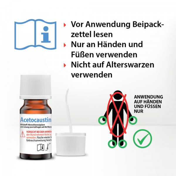 - BEACHTE: Vor Anwendung Beipackzettel lesen, nur an Händen und Füßen verwenden, nicht auf Alterswarzen verwenden