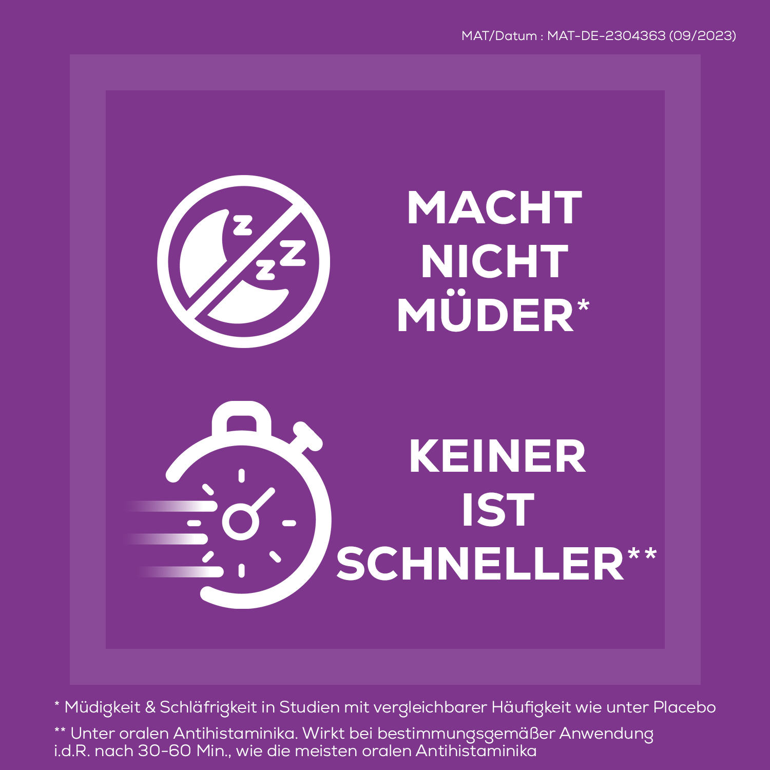 Das Antiallergikum kontrolliert allergische Symptome wirksam für 24 Stunden und muss somit nur 1x täglich eingenommen werden. Um den Alltag ohne lästige Allergiesymptome zu meistern, nehmen Erwachsene und Kinder ab 12 Jahren eine Tablette idealerweise eine Stunde vor dem Frühstück mit einem Glas Wasser ein.