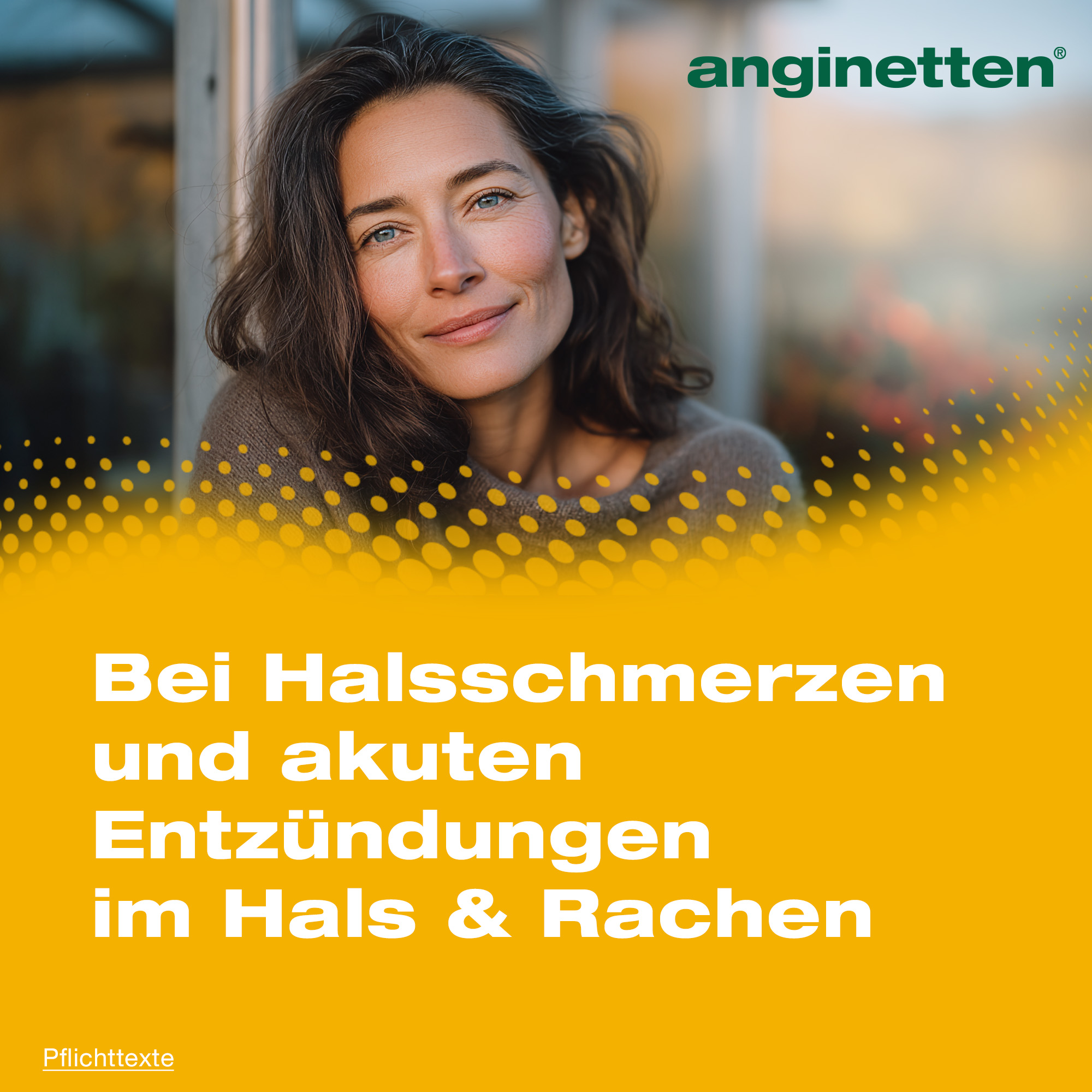 anginetten® Halstabletten zuckerfrei werden zur unterstützenden Behandlung bei Entzündungen der Rachenschleimhaut angewendet,