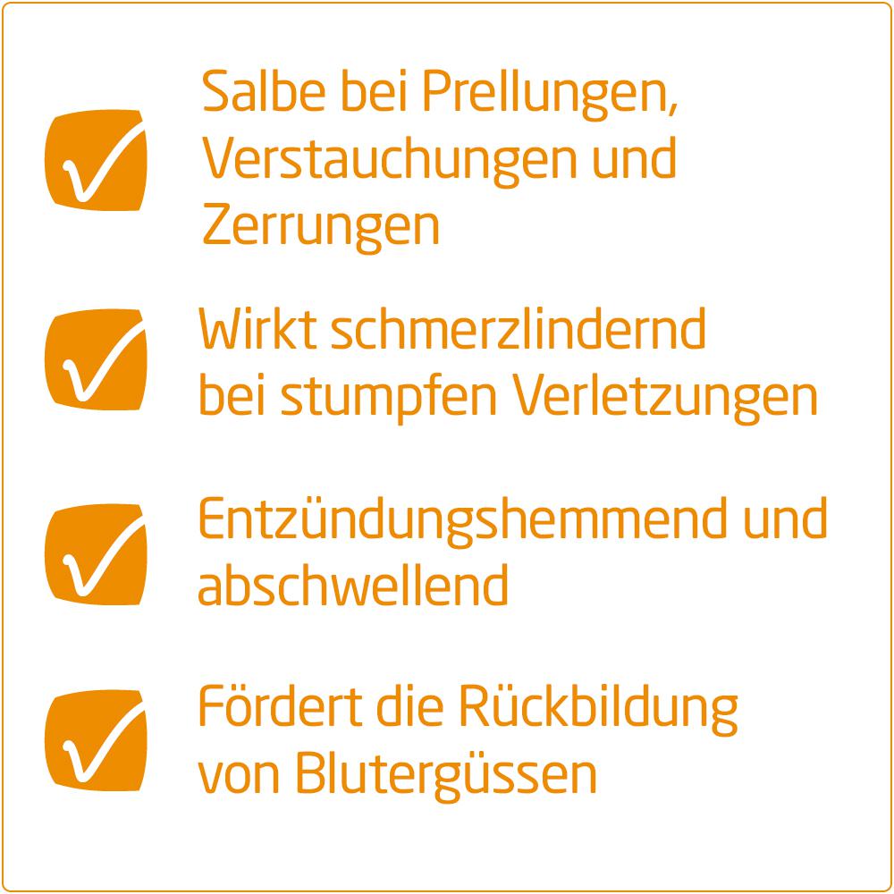 - Wirkt schmerzlindernd bei stumpfen Verletzungen