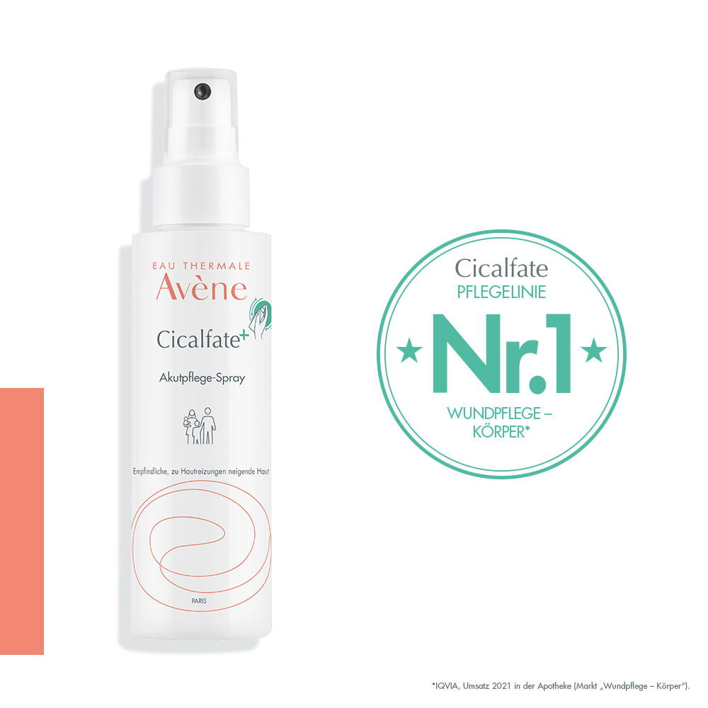 Cicalfate+ Akutpflege-Spray ist ein 3-in-1 Pflegeprodukt, das die empfindliche, gereizte Haut, die zu oberflächlicher Mazeration neigt (nässende Hautstellen, Hautfalten, Windelausschlag, Windpocken usw.) trocknet, repariert und beruhigt.