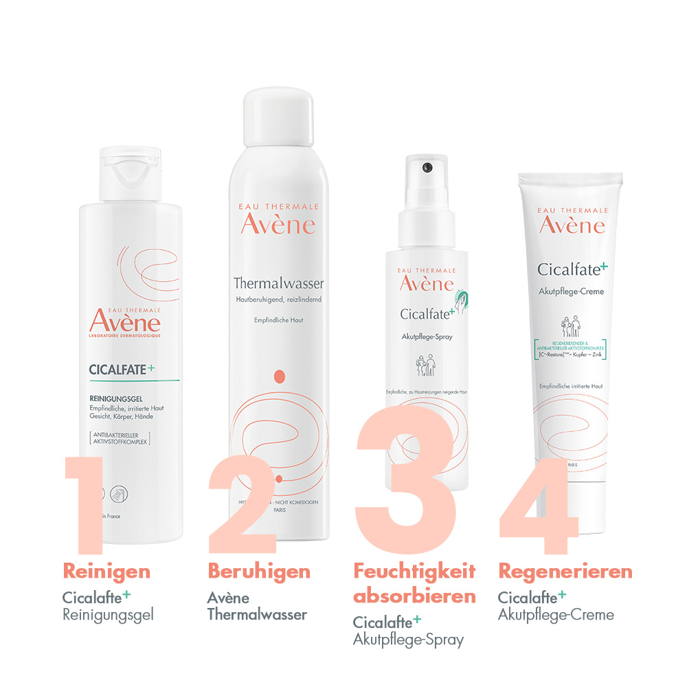 Die einzigartige, regenerierende und antibakterielle Aktivstoffkombination, bestehend aus [C+-Restore]™, Kupfer- und Zinksulfat, Maisstärke + Hectorite und Avène Thermalwasser, unterstützt pflegend im Rahmen der natürlichen Hautregeneration.