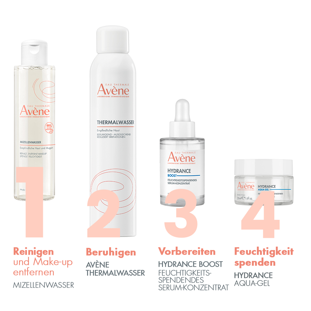 2. Avène Thermalwasser großzügig auf die Haut aufsprühen. Sanft abtrocknen.