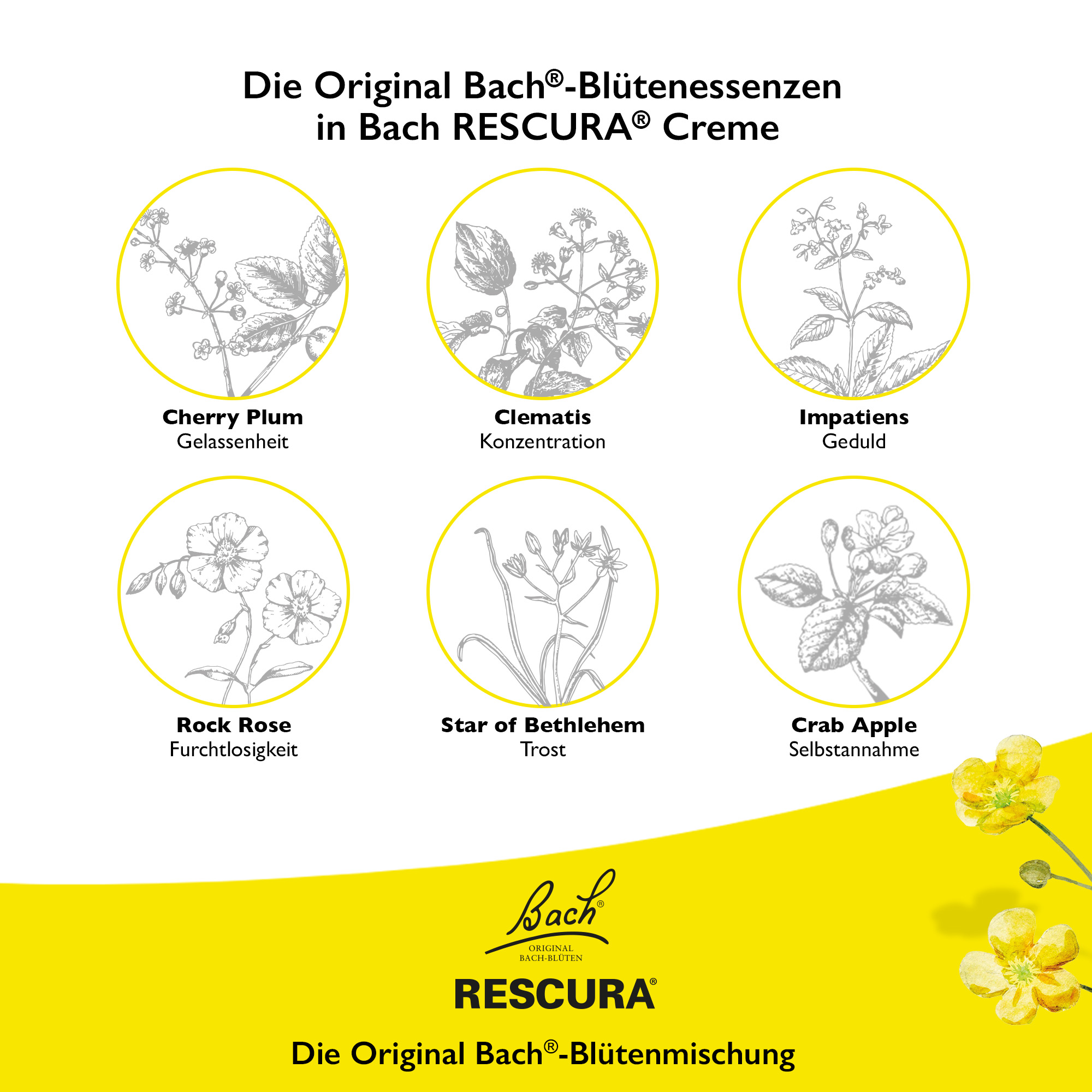 Juckende oder trockene Haut benötigt Zuwendung und Pflege. Ob emotionale Anforderungen, Wintertrockenheit oder Hitze im Sommer - wenn es unserer Haut nicht gut geht, geht es uns auch nicht gut. Deshalb wurde die Bach RESCURA® Creme entwickelt - eine Hautcreme mit einer exklusiven Mischung aus der bewährten Original Bach®-Blütenmischung von Edward Bach kombiniert mit reinigenden Bachblüte Crab Apple (Holzapfel), handgepflückt aus seinem ursprünglichen Garten in England. Sie pflegt und beruhigt, z.B. beanspruchte Haut und Hautstellen. Diese 24-Stunden Pflege ist für die ganze Familie geeignet. Bach RESCURA® Creme ist eine nicht-fettende, intensive Feuchtigkeitspflege, die entwickelt wurde, um den Feuchtigkeitsgehalt der Haut wieder aufzufüllen und trockene, brüchige und empfindliche Haut zu beruhigen. Die geruchsneutrale 3-in-1 Feuchtigkeitspflege, die hilft Hände, Haut und Gesicht gegen Umwelteinflüsse und Stressfaktoren zu schützen. Für die ganze Familie geeignet. Parfüm- und lanolinfrei.