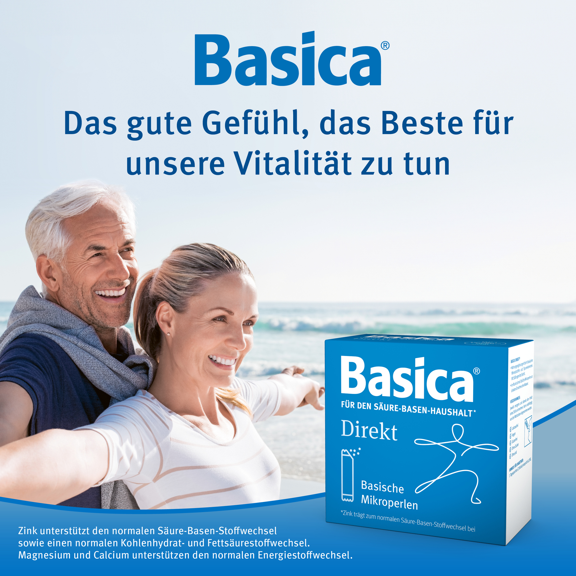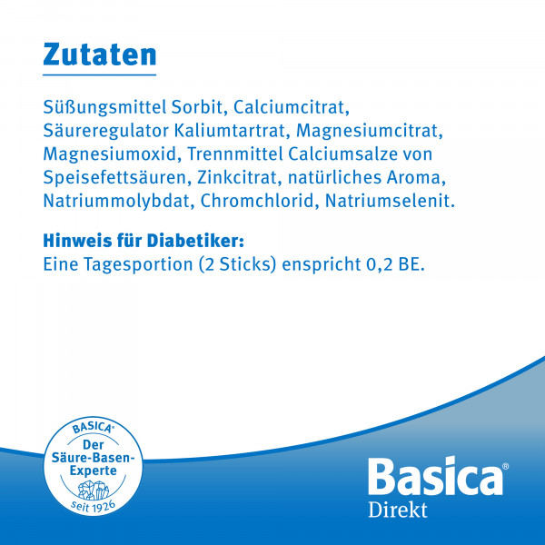Basica® mit basischen Mineralstoffen und wertvollen Spurenelementen unterstützt das gesundheitliche Wohlbefinden und Zink den normalen Säure-Basen-Stoffwechsel.