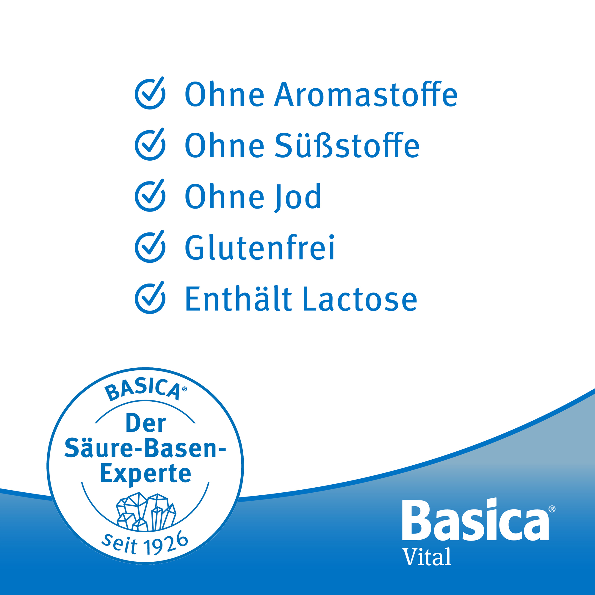 Granulat ist frei von Aroma- und Süßstoffen. Basica Vital® ist geschmacksneutral und wird in kalte oder warme Speisen
