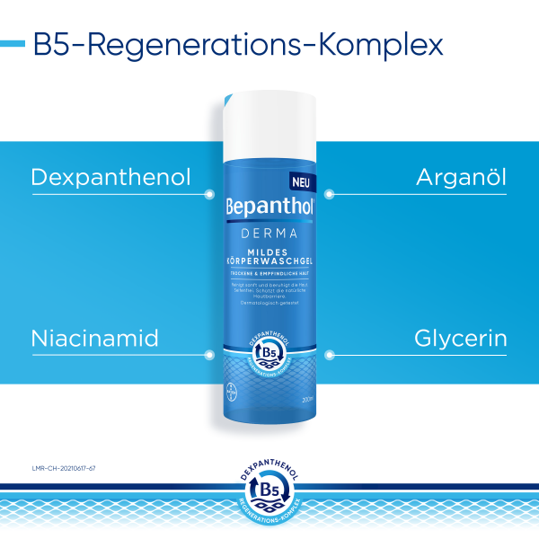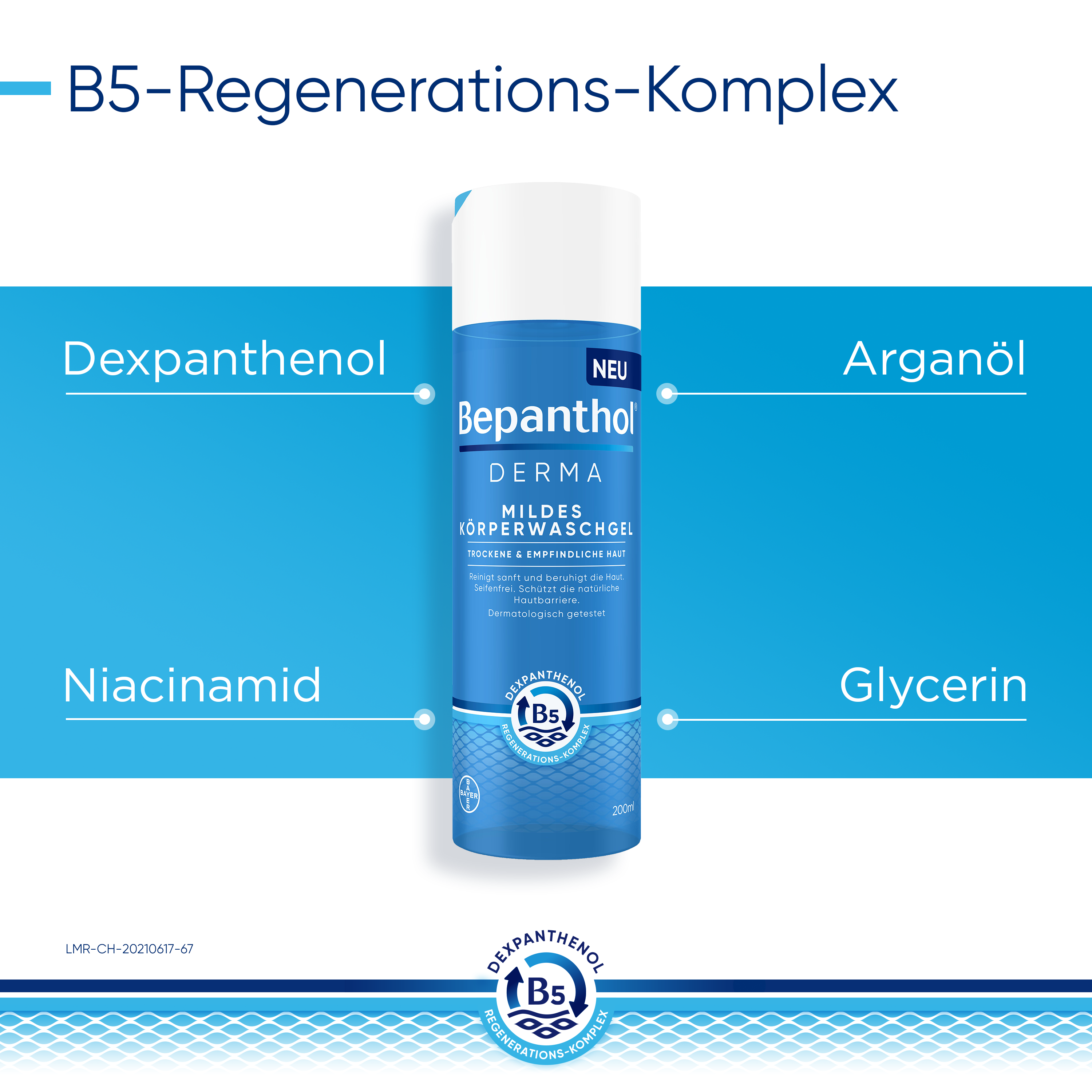 Das Bepanthol® Derma Mildes Körperwaschgel ist eine dermatologisch getestete medizinische Hautpflege aus dem Hause Bepanthen® – wissenschaftlich fundiert und von Fachleuten empfohlen.