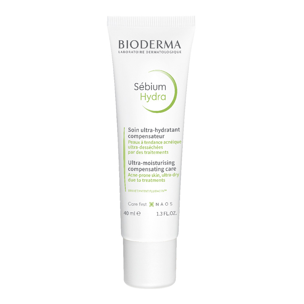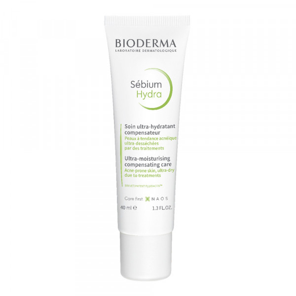 Besonders während einer oralen Aknetherapie ist die Haut meist sehr gereizt und trocken. Sébium Hydra unterstützt die stark strapaziert Haut mit patentierten Wirkprinzipien und ihrer feuchtigkeitsspendenden Wirkung.