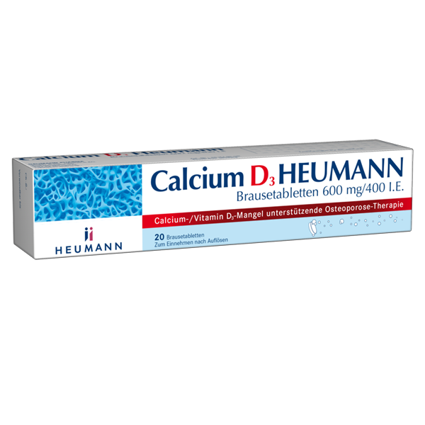 Calcium ist ein lebensnotwendiger Mineralstoff mit zahlreichen wichtigen Funktionen in unserem Körper. Calcium D3 HEUMANN Brausetabletten gleichen Calcium- und Vitamin D3-Mangel aus und unterstützen die Behandlung von Osteoporose. Die Brausetabletten sind leicht und vollständig löslich und schmecken angenehm fruchtig nach Zitrone.