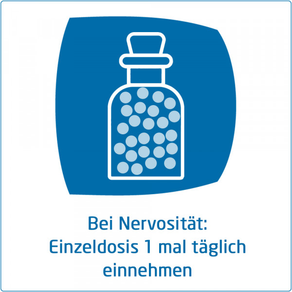 In 10 g Streukügelchen sind verarbeitet: Wirkstoe: Avena sativa 2b Ø 0,5 g / Humulus lupulus Ø 0,024 g / Passiora incarnata Ø 0,15 g / Valeriana, ethanol. Decoctum Ø 0,3 g / Coea tosta, ethanol. Decoctum Dil. D60 (HAB, V. 19f) 0,1 g.
