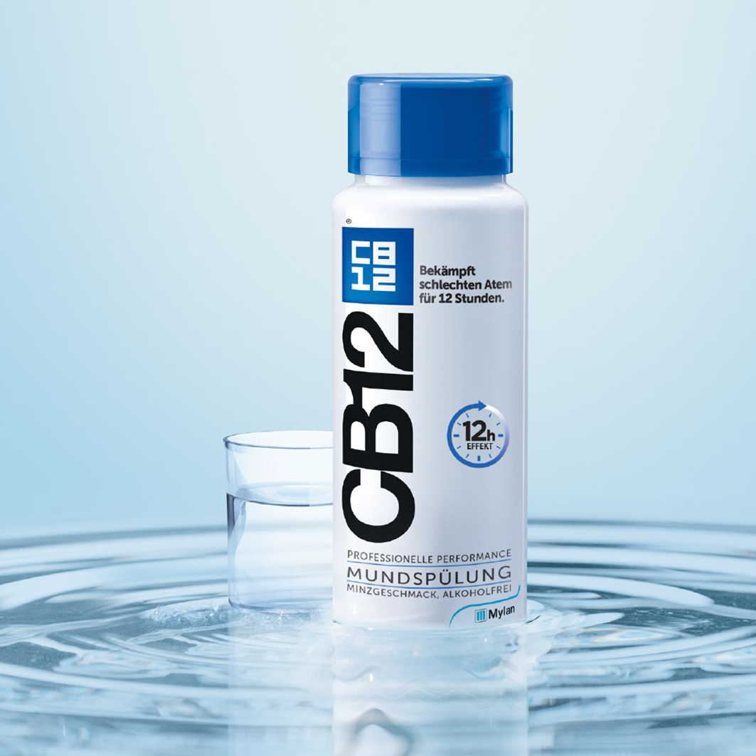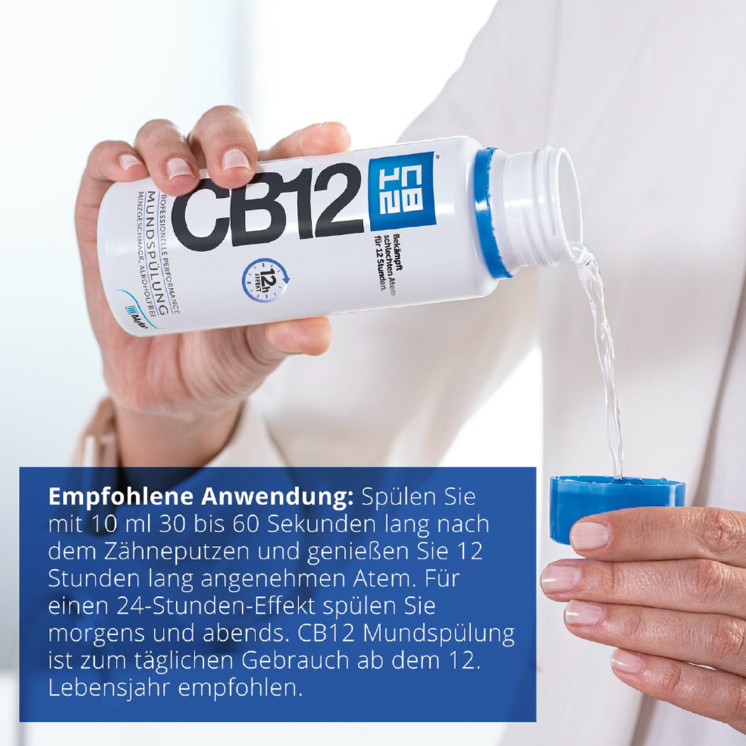 Das Produkt enthält 0,3% Zink, 0,025% Chlorhexidin und 0,05% Natriumfluorid. CB12 schmeckt frisch nach Minze und Menthol.