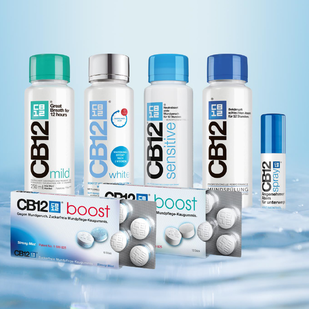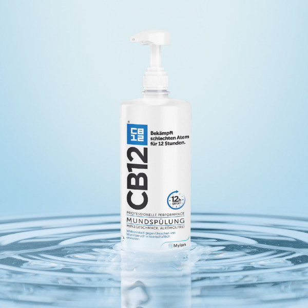 Bekämpfen Sie die Ursache von Mundgeruch mit der CB12 Mundspülung. CB12 ist eine frei verkäufliche Mundspülung, die zwei Hauptbestandteilen enthält: Zinkacetat (0,3 Prozent) und Chlorhexidin (0,025 Prozent). Diese synergetisch wirkende Kombination in unserer CB12 Mundspülung bekämpft die Ursache von Mundgeruch für bis zu 12 Stunden! Regelmäßiges Spülen mit einer Mundspülung ist ein grundlegender Bestandteil einer guten Mundhygiene-Routine, um Mundgeruch zu behandeln - zusammen mit korrektem Zähneputzen und der Verwendung von Zahnseide. Es ist wissenschaftlich erwiesen, dass in 90 Prozent der Fälle von Mundgeruch die Ursache in einer Bakterienansammlung liegt. Diese pathologische Anhäufung kann in den Zahnzwischenräumen, in den Zahnfleischtaschen und insbesondere auf dem Zungenrücken stattfinden. Die Bakterien produzieren dann flüchtige Schwefelverbindungen (VSC), die als unangenehm riechende Gase hauptsächlich für Mundgeruch verantwortlich sind.