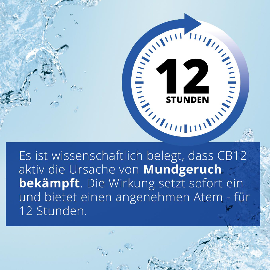 - Nach dem Zähneputzen 30 bis 60 Sekunden lang mit 10 ml CB12 Mundspülung reinigen, gurgeln und dann ausspucken. Nicht schlucken. Genießen Sie 12 Stunden lang einen angenehmen Atem!