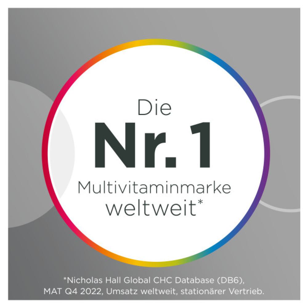 Der menschliche Körper ist ein biologisches Meisterwerk in dem hochkomplexe Prozesse ablaufen für die Mikronährstoffe in ausreichender Menge benötigt werden. Die Centrum Männer-Nährstoff-Formel Für Ihn 50+ enthält alle lebensnotwendigen Vitamine sowie wichtige Mineralstoffe und Spurenelemente. Die Formulierung ist speziell auf die Bedürfnisse von Männern ab 50 abgestimmt - zur optimalen Ergänzung Ihrer täglichen Ernährung. Mit nur einer Tablette pro Tag decken Sie den Tagesbedarf vieler Vitamine. Das Ergebnis: Der Körper wird durch die mit Sorgfalt zusammengestellte Nährstoffformel ganzheitlich unterstützt. Abwehrkräfte: Vitamin C, Zink und Selen unterstützen die normale Funktion des Immunsystems. Gehirn: Eisen trägt zu einer normalen kognitiven Funktion und Pantothensäure zu einer normalen geistigen Leistung bei. Augen: Vitamin A trägt zur Erhaltung normaler Sehkraft bei. Vitalität und Energie: Vitamin B6 und B12 tragen zur Verringerung von Müdigkeit und Ermüdung bei. Knochen Gelenke: Vitamin D und Calcium tragen zur Erhaltung normaler Knochen bei. Haut Haare: Biotin trägt zur Erhaltung normaler Haut und Haare bei. Muskeln: Kalium und Magnesium tragen zu einer normalen Muskelfunktion bei. Zellschutz: Vitamin E und Kupfer tragen dazu bei, die Zellen vor oxidativem Stress zu schützen. Die Centrum Formulierungen werden auf Grundlage wissenschaftlicher Erkenntnisse entwickelt und von Nährstoffexperten formuliert. Sämtliche Mikronährstoffe sind auf Sicherheit geprüft und zertifiziert.