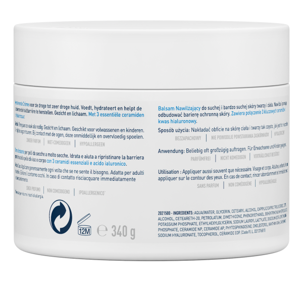 CeraVe Feuchtigkeitscreme, Reichhaltige Pflege für trockene bis sehr trockene Haut von Gesicht und Körper