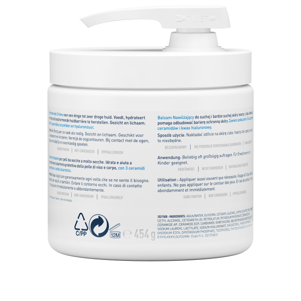 Feuchtigkeitsspendende Körpercreme für die ganze Familie Die CeraVe Feuchtigkeitscreme für Gesicht und Körper hydratisiert die Haut, beugt Austrocknung vor und stärkt die Hautschutzbarriere. CeraVe Feuchtigkeitscreme für trockene bis sehr trockene Haut Die Hautpflege zeichnet sich durch ihre patentierte MVE-Wirkstoff-Freisetzung aus, die die aktiven Wirkstoffe über den Tag verteilt an die Haut freigibt. Dank Hyaluron und drei essenziellen Ceramiden wird die Haut kontinuierlich mit Feuchtigkeit versorgt und die natürliche Hautschutzbarriere gestärkt – für ein angenehm weiches Hautgefühl. Die CeraVe Feuchtigkeitscreme enthält keine Dufstoffe und eignet sich auch bei zu Neurodermitis neigende Haut und für Allergiker.