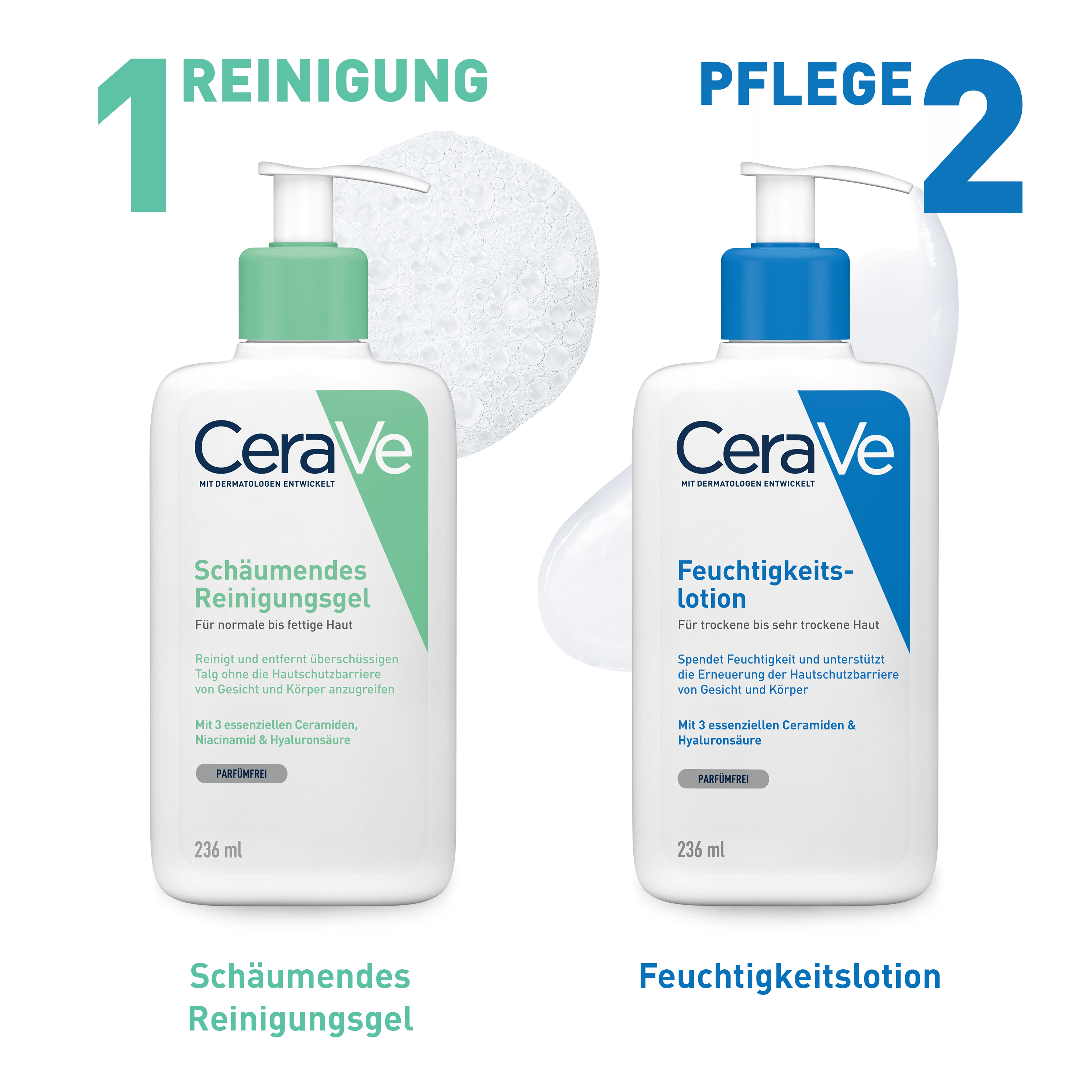Die Feuchtigkeitslotion von CeraVe kann beliebig oft und großzügig auf die gereinigte Haut von Gesicht und Körper aufgetragen werden. Diese dafür regelmäßig insbesondere auf trockene und sehr trockene Hautstellen geben und sanft in kreisenden Bewegungen einmassieren. Die Augenkonturen aussparen. Dank ihrer nicht-komedogenen und parfumfreien Formel kann die feuchtigkeitsspendende Pflegelotion für alle Hauttypen, einschließlich für zu Neurodermitis und Allergien neigende Haut verwendet werden. Um die Pflegeroutine zu intensivieren eignet sich darüber hinaus ein CeraVe Reinigungsprodukt für trockene Haut.