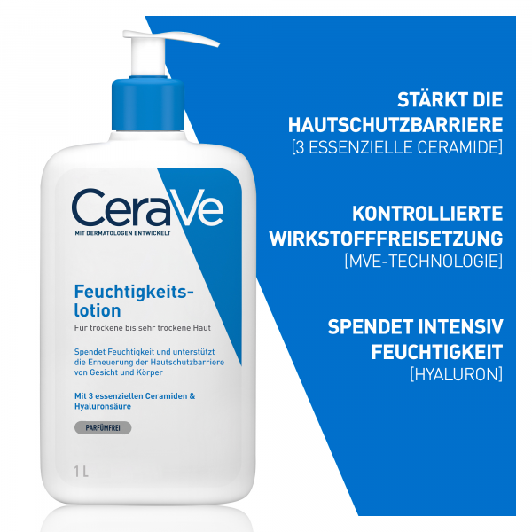 - Die CeraVe Feuchtigkeitslotion ist auf die Bedürfnisse trockener bis sehr trockener Haut abgestimmt und eignet sich für Gesicht und Körper
