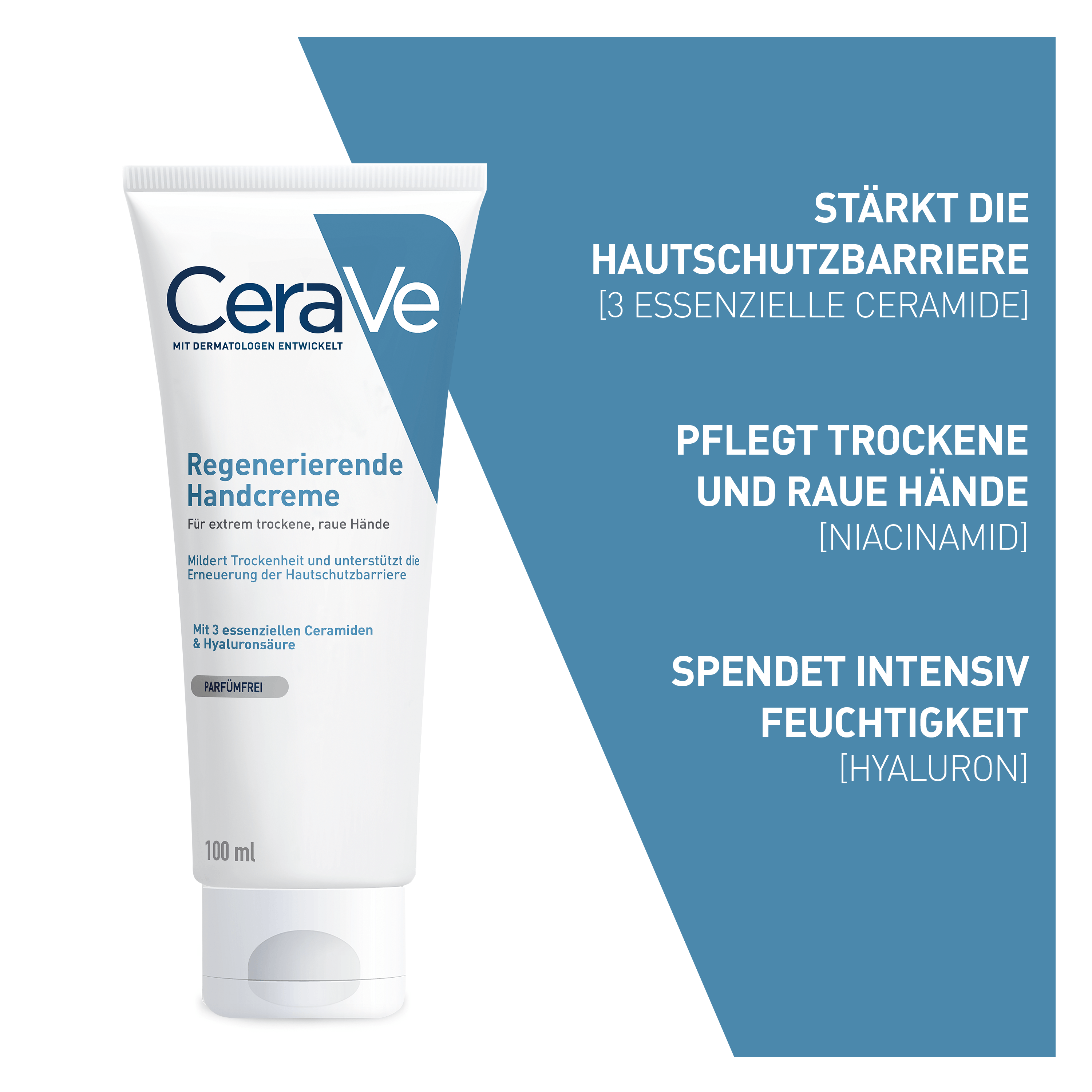 CeraVe Regenerierende Handcreme für extrem trockene, raue Hände, mildert Trockenheit, mit 3 essenziellen Ceramiden und Hyaluron