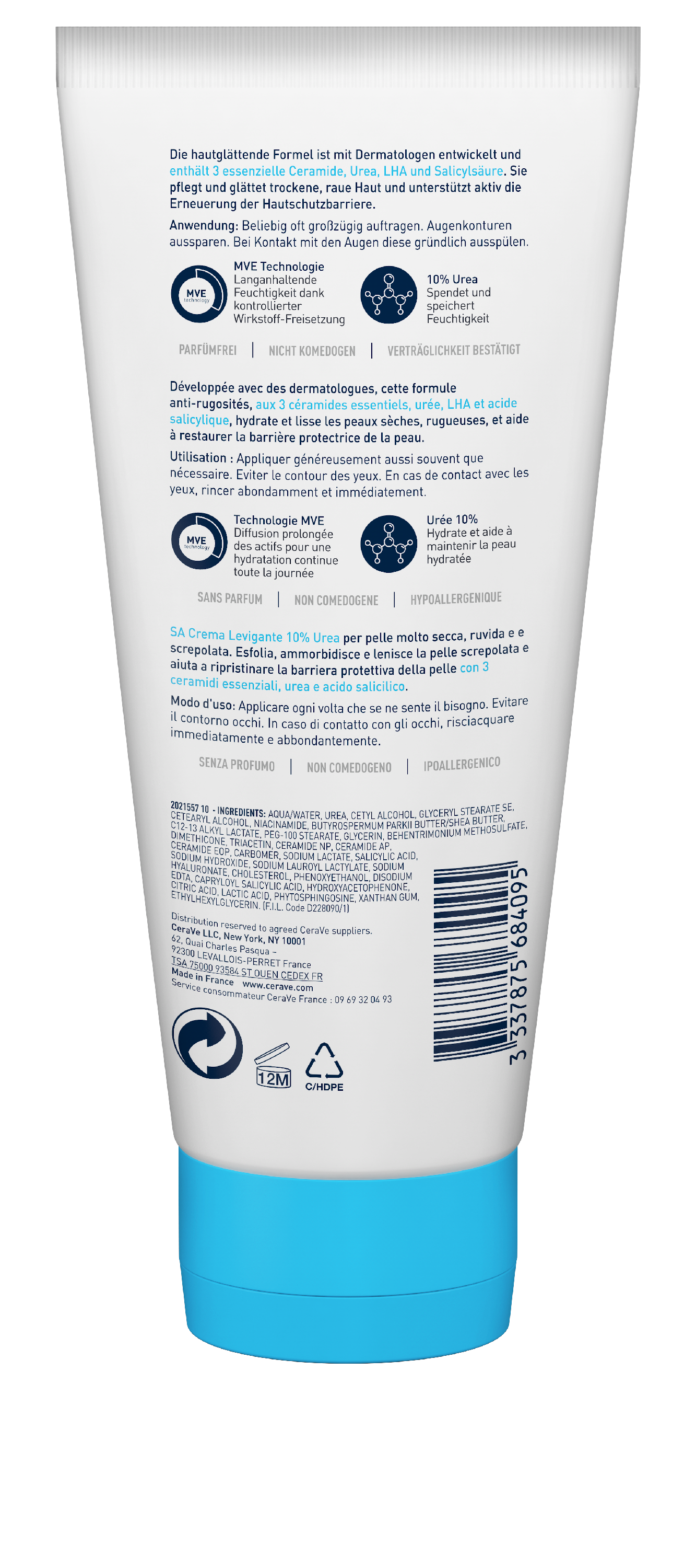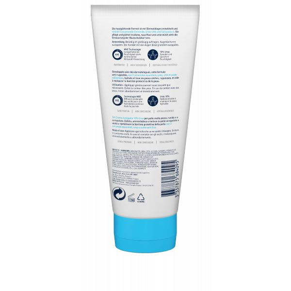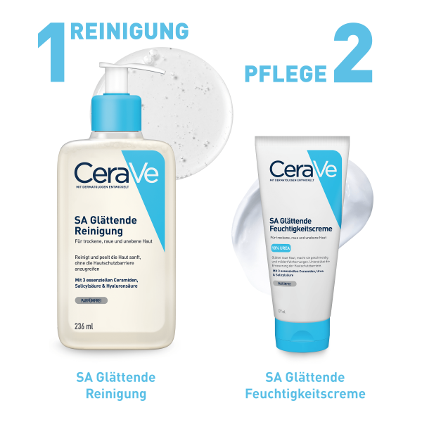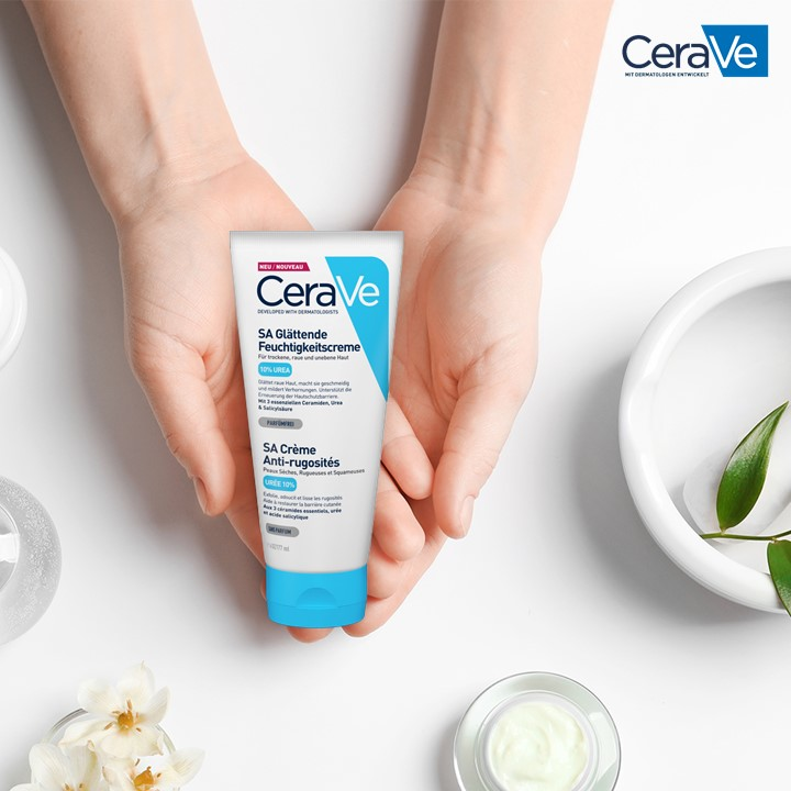 • SA Urea Glättende Feuchtigkeitscreme von CeraVe mit 10 % Urea und Hyaluronsäure versorgt die Haut intensiv und langanhaltend mit Feuchtigkeit.