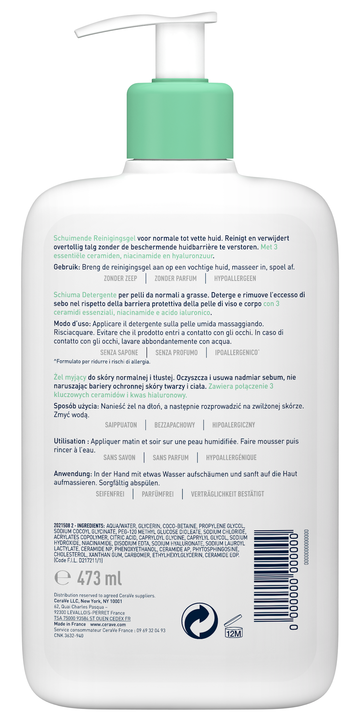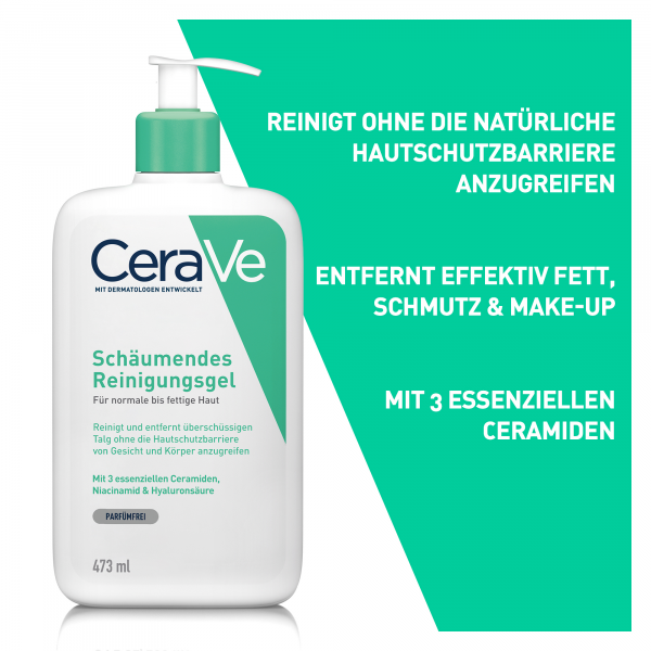 CeraVe Schäumendes Reinigungsgel für normale bis fettige Haut, Reinigung für Körper und Gesicht, mit 3 essenziellen Ceramiden und Hyaluron