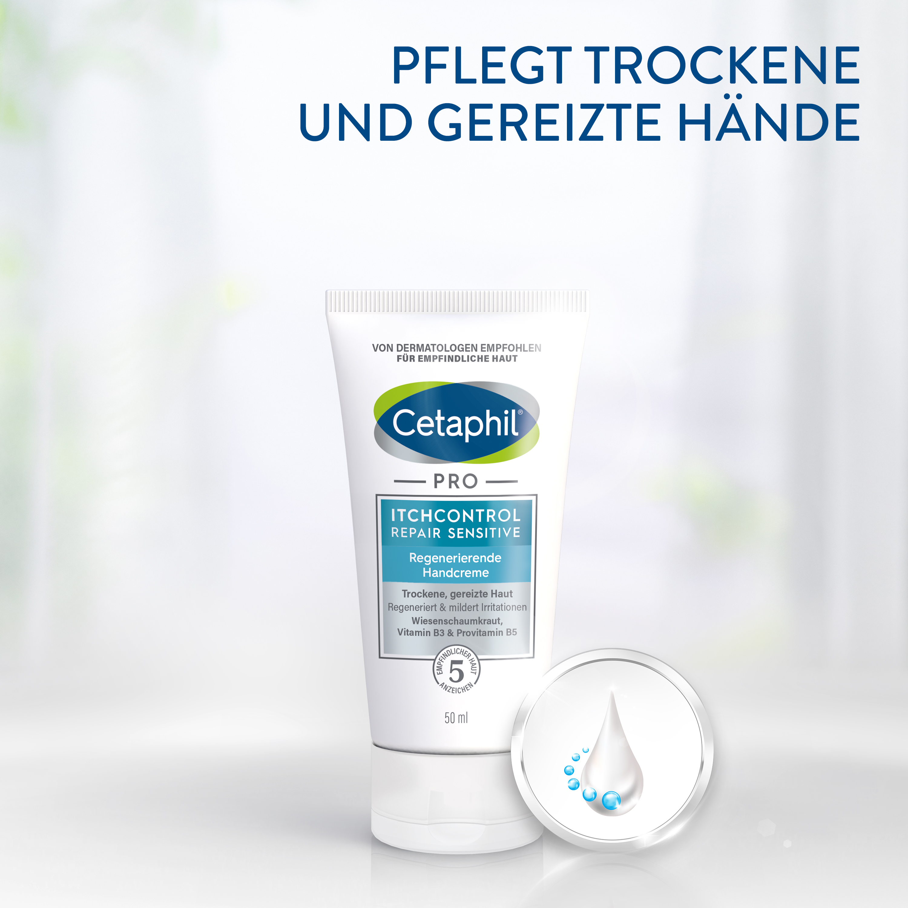 Das Cetaphil® PRO Itch Control Pflegekonzept für die Händebesteht aus Reinigung, Schutz und Pflege. Es verhilft Ihren strapazierten Händen zu einem weichen, glatten Hautgefühl. Alle Produkte sind auch im Nahrungsmittelbereich anwendbar und frei von Duftstoffen.