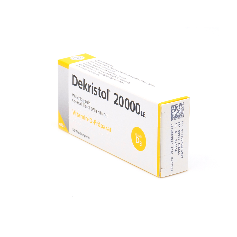 Dekristol 20 000 I.E. enthält Vitamin D3 (auch bekannt als Colecalciferol) zur Regulation der Aufnahme und des Stoffwechsels von Calcium sowie des Calciumeinbaus in das Knochengewebe.