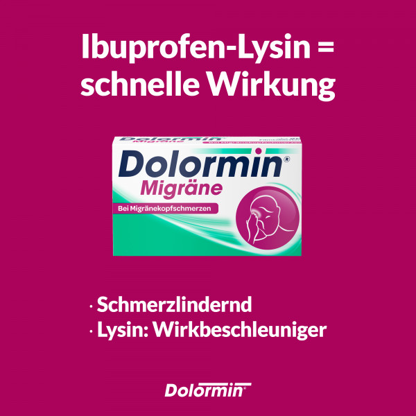 mit oder ohne Aura, sowie leichten bis mäßig starken Schmerzen, wie Spannungskopfschmerzen. Der körpereigene Eiweißbaustein Lysin sorgt dafür, dass Ibuprofen schneller vom Körper aufgenommen werden kann und schnell seine schmerzlindernde Wirkung entfalten kann.
