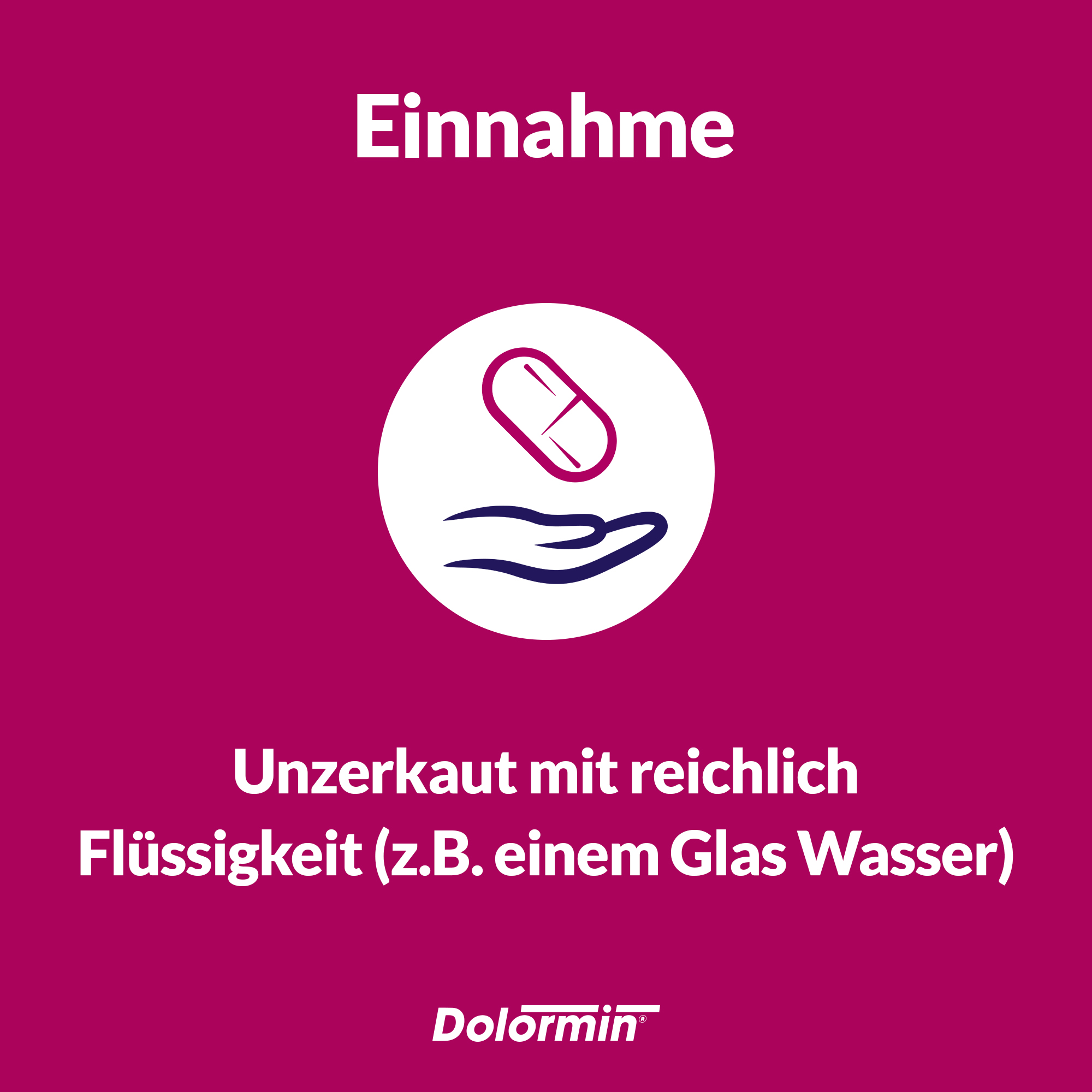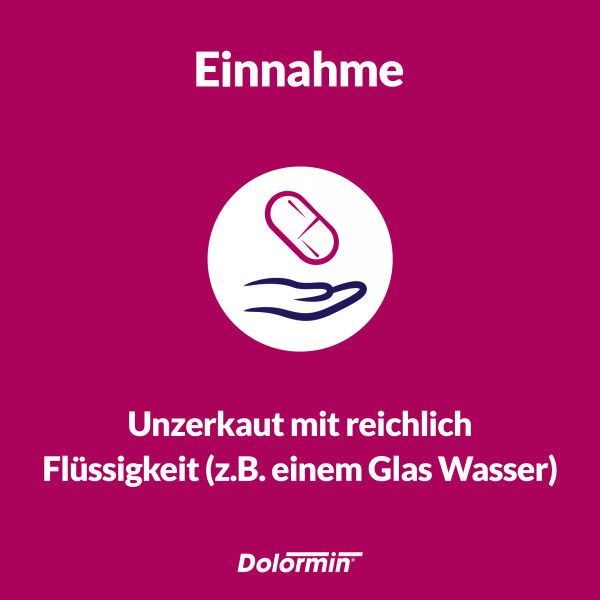 Dolormin® Migräne Filmtabletten sollten unzerkaut mit reichlich Flüssigkeit eingenommen werden. Bei einem empfindlichen Magen empfiehlt sich, das Präparat während einer Mahlzeit einzunehmen.