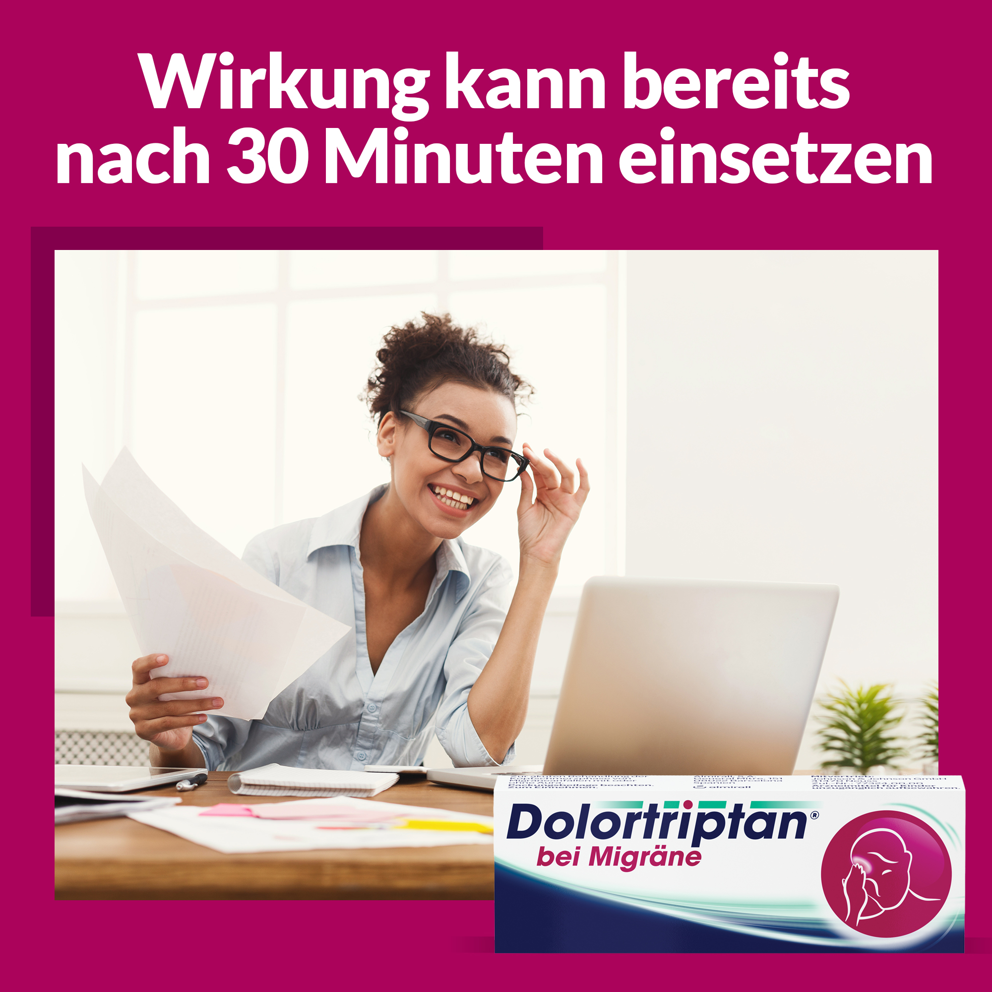 Pro Migräneanfall sollte eine Tablette Dolortriptan®, am besten mit einem Glas Wasser, eingenommen werden. Tritt innerhalb der nächsten 24 Stunden ein neuer Migräneanfall auf, kann eine zweite Tablette eingenommen werden, sofern die erste Tablette eine Linderung verschafft hat. Verbessern sich die Beschwerden nach Einnahme der ersten Tablette nicht, sollte keine weitere Tablette eingenommen werden.