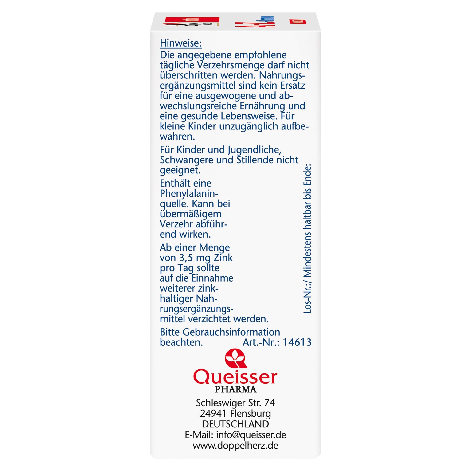 Nahrungsergänzungsmittel sind kein Ersatz für eine ausgewogene und abwechslungsreiche Ernährung und eine gesunde Lebensweise. Die angegebene empfohlene tägliche Verzehrsmenge darf nicht überschritten werden. Außerhalb der Reichweite von kleinen Kindern aufbewahren.
