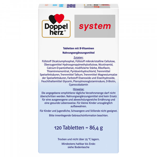DoppelherzNahrungsergänzungsmittel sind kein Ersatz für eine ausgewogene und abwechslungsreiche Ernährung und eine gesunde Lebensweise. Die angegebene empfohlene tägliche Verzehrsmenge darf nicht überschritten werden. Außerhalb der Reichweite von kleinen Kindern aufbewahren.
