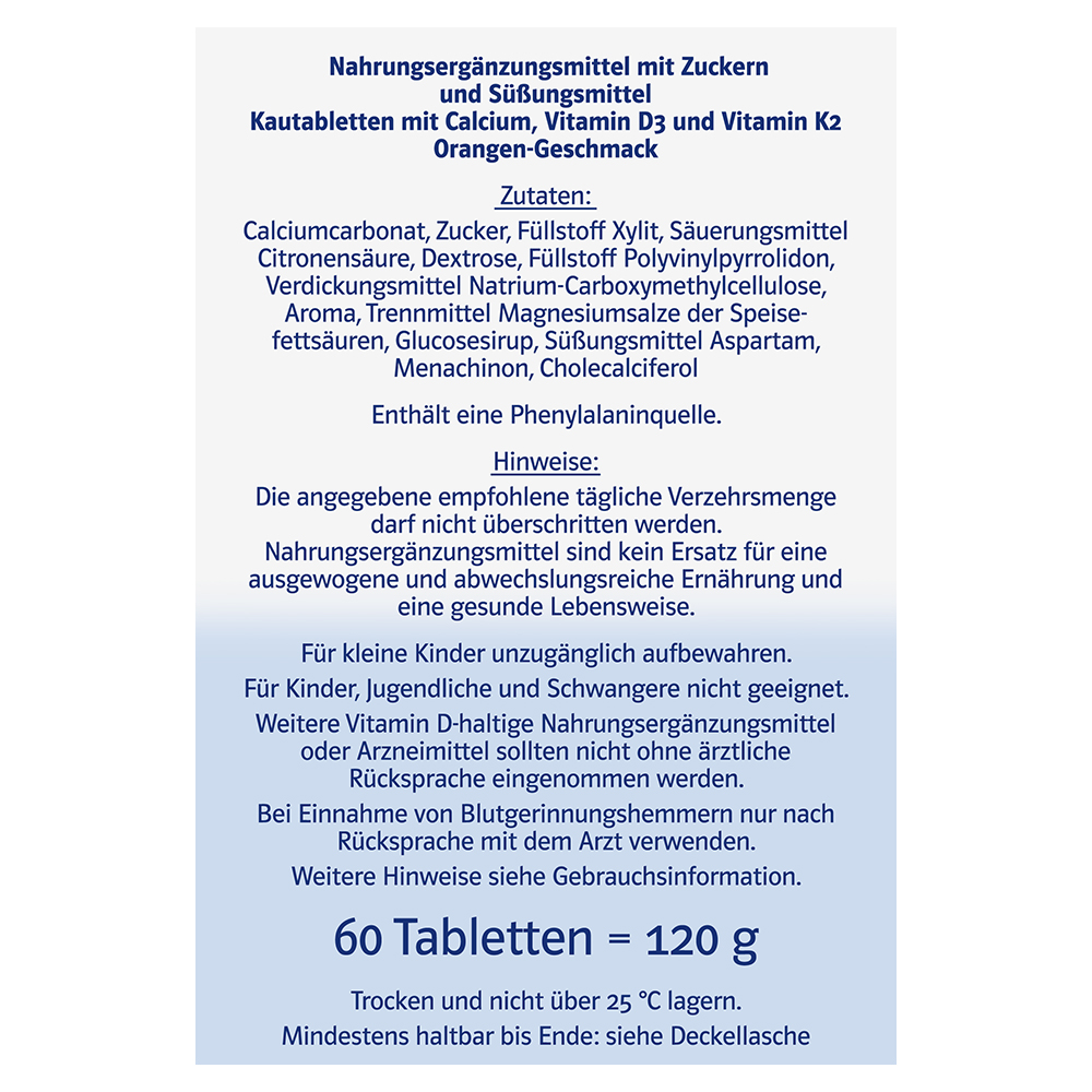 • Starke Kombi: Calcium, Vitamin D3 und Vitamin K2 für den normalen Knochenerhalt