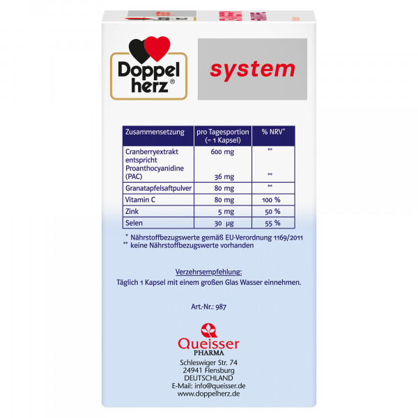 DoppelherzNahrungsergänzungsmittel sind kein Ersatz für eine ausgewogene und abwechslungsreiche Ernährung und eine gesunde Lebensweise. Die angegebene empfohlene tägliche Verzehrsmenge darf nicht überschritten werden. Außerhalb der Reichweite von kleinen Kindern aufbewahren.
