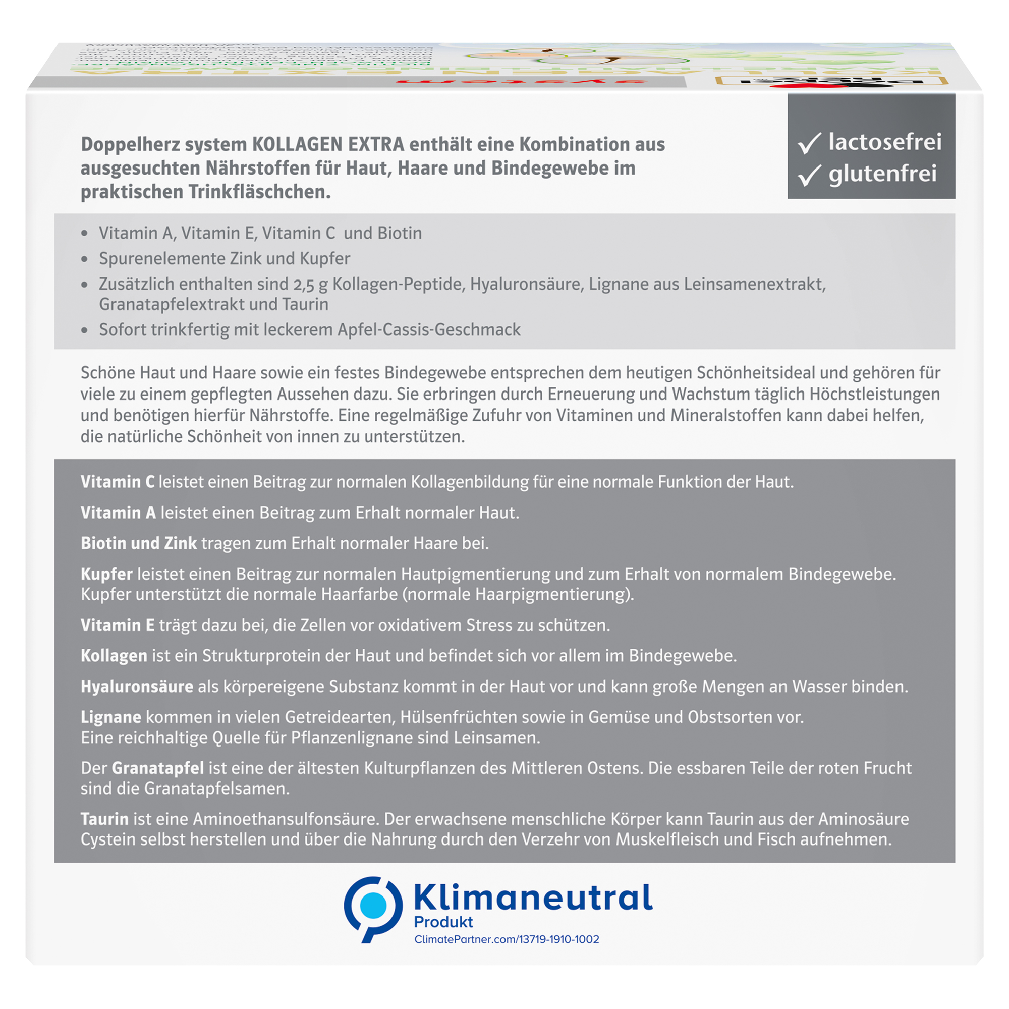 • Vitamin C trägt zur normalen Kollagenbildung für eine normale Hautfunktion bei