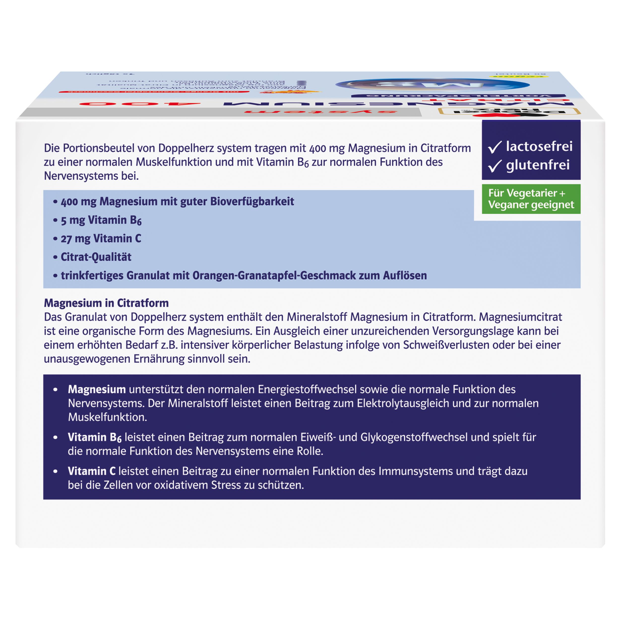 • Magnesium für die normale Funktion der Muskeln und des Nervensystems