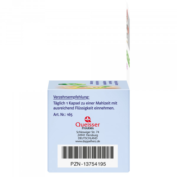 DoppelherzNahrungsergänzungsmittel sind kein Ersatz für eine ausgewogene und abwechslungsreiche Ernährung und eine gesunde Lebensweise. Die angegebene empfohlene tägliche Verzehrsmenge darf nicht überschritten werden. Außerhalb der Reichweite von kleinen Kindern aufbewahren.