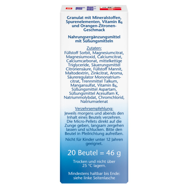 • Das zusätzlich enthaltene Magnesium leistet einen Beitrag zum normalen Energiestoffwechsel und Vitamin B6 trägt zur Verringerung von Müdigkeit und Erschöpfung bei