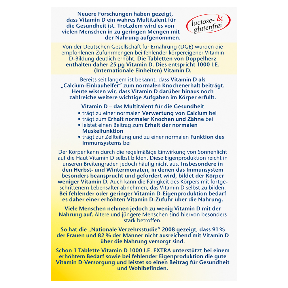• Vitamin D trägt zum Erhalt normaler Knochen und Zähne und einer normalen Funktion des Immunsystems bei