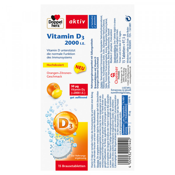• Hochdosiert: 2000 I.E - entspricht 50 µg Vitamin D3 - pro Brausetablette