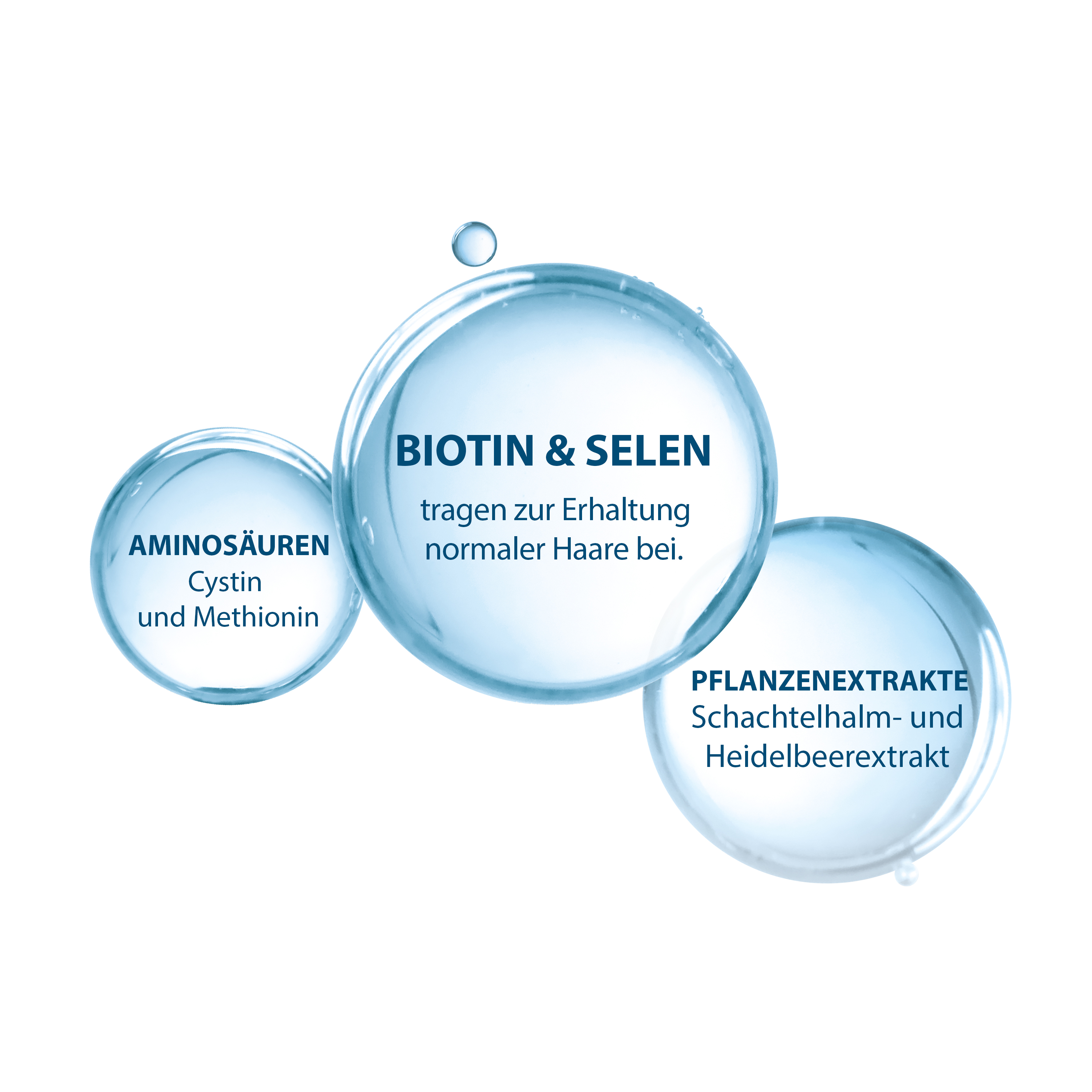 • *Biotin und Selen tragen zur Erhaltung normaler Haare bei