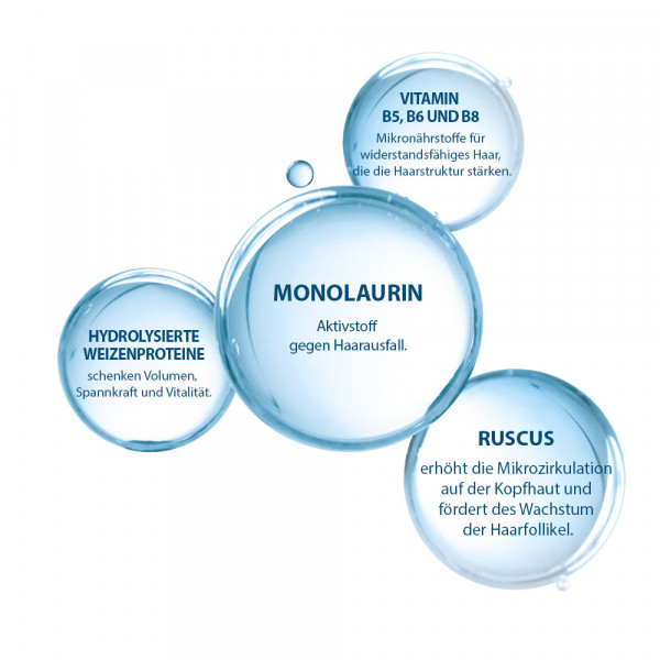Revitalisiert und stärkt die Haarwurzel dank Aktivstoff Monolaurin - beschleunigt Haarausfallbehandlungen.