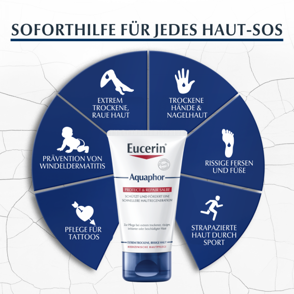 Eucerin Aquaphor ist zudem sanft zu sensibler Babyhaut und eignet sich als Babycreme z. B. bei Kälte oder als Windelcreme, für ""Slugging"" (Maske zum Einschließen der nächtlichen Hautpflege-Produkte) oder als feuchtigkeitsspendende Pflege für Tattoos*.