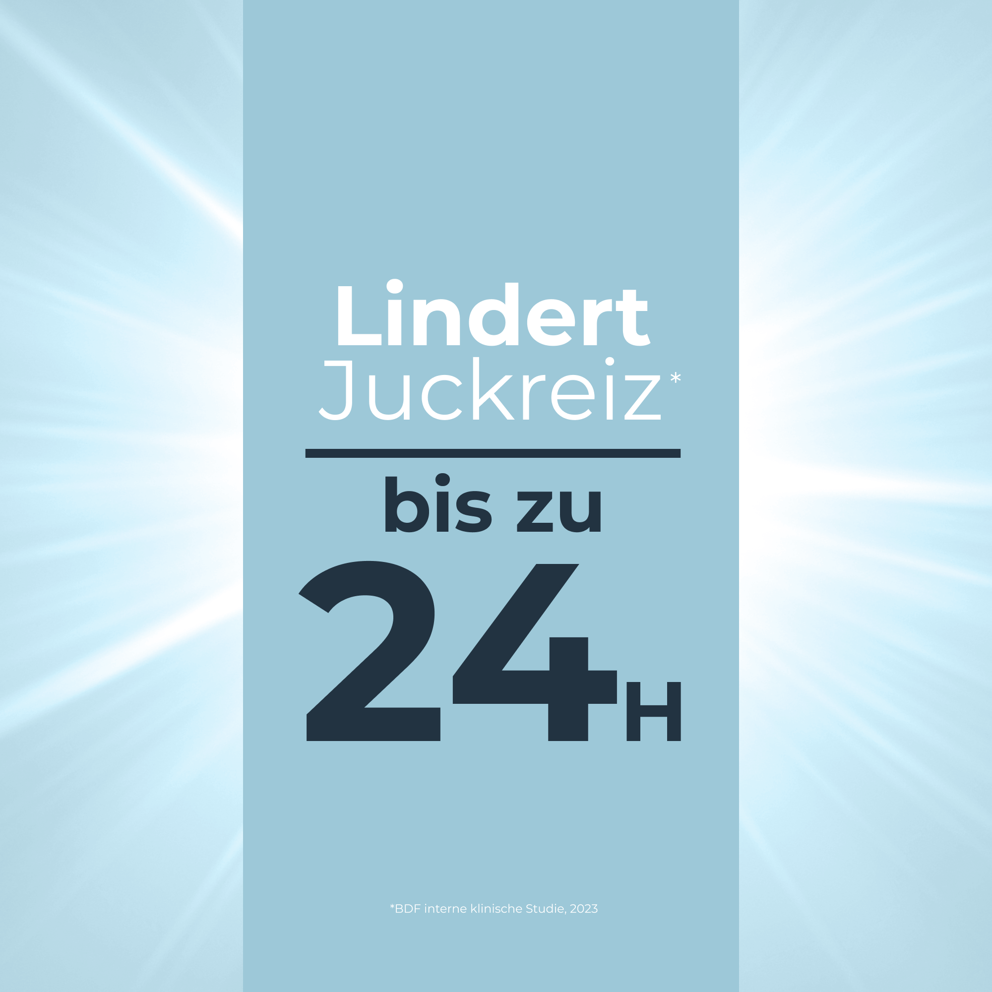 Der Aktiv-Pflege-Komplex kombiniert mehrere Wirkstoffe, um die Haut bestmöglich zu pflegen: Omega Fettsäuren regenerieren die Hautbarriere, Licocalcone A wirkt hautberuhigend und Decandiol wirkt antibakteriell. Die Formel mit Menthoxypropandiol lindert zudem den Juckreiz.