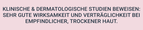 Klinische und dermatologische Studien beweisen eine sehr gute Wirksamkeit und Verträglichkeit bei empfindlicher, trockener Haut und problematischen Hautzuständen.