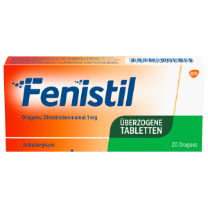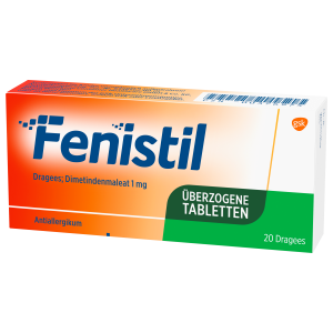 Hilfe bei allergischen Erkrankungen und Juckreiz. Allergische Symptome wie Juckreiz und Schnupfen können mehr als unangenehm sein. Gut, dass es effektive und schnelle Hilfe gibt. Fenistil Dragees mit dem bewährten Antihistaminikum Dimetindenmaleat wirken antiallergisch und lindern Symptome, die bei einer allergischen Reaktion durch die vermehrte Ausschüttung von Histamin ausgelöst werden.